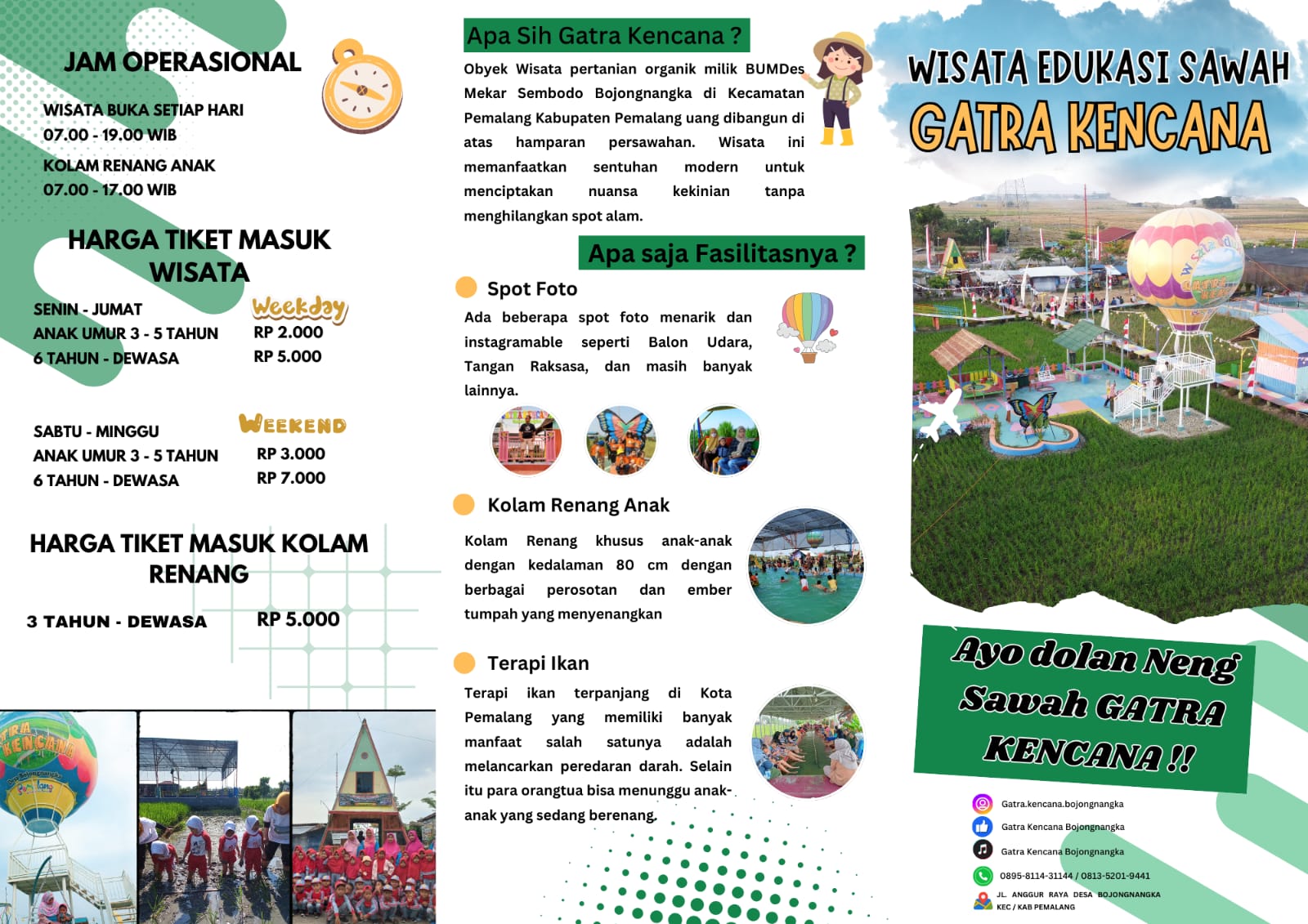 Wisata Edukasi Gatra Kencana merupakan Obyek Wisata pertanian organik milik BUMDes Mekar Sembodo Bojongnangka di Kec. Pemalang, Kab. Pemalang, yang dibangun di atas hamparan persawahan loh sob. Wisata ini memanfaatkan sentuhan modern untuk menciptakan nuansa kekinian tanpa menghilangkan spot alam.